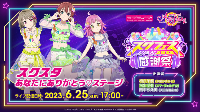 ■著作権表記:(C)2013 プロジェクトラブライブ!(C)2017 プロジェクトラブライブ!サンシャイン!! (C)2022 プロジェクトラブライブ!虹ヶ咲学園スクールアイドル同好会 (C)2022 プロジェクトラブライブ!スーパースター!! (C)プロジェクトラブライブ!蓮ノ空女学院スクールアイドルクラブ (C)bushiroad