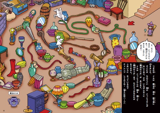 ▲めいろのページ。物語の合間には楽しく遊べるページも収録。