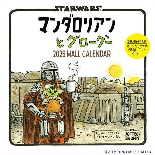 ルーカスフィルム公認、かわいくてやんちゃなグローグー(チャイルド)と、そのお世話に奔走するマンドー(マンダロリアン)の日常を描いた、親子で楽しめるかわいいイラストカレンダー!