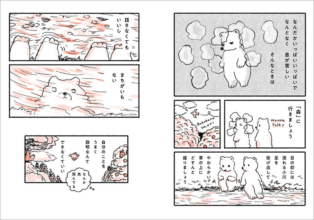 専門家のように悩みの明確な解決方法を示すわけではありません。しかし、これまでの著者自身の経験から生み出された言葉と絵によって、読んでいくうちに「こうしなければいけない」「これは解決しなければいけない問題だ」という思い込みから解き放たれていきます。