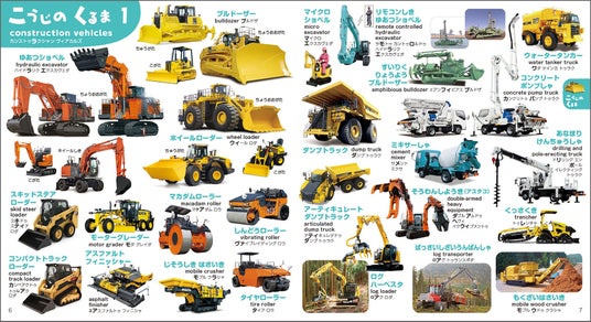 ▲工事の車だけでもこんなにたくさん! 図鑑を持ちながらまち歩きが楽しくなる!