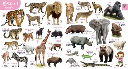 動物・虫などの生き物、草花・空などの自然、食べ物・身につけるものなどの生活、ひらがな・カタカナ・アルファベット・数・時計・地図などの学び、幅広い分野のことが満載!