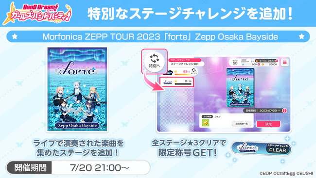 今回のライブで演奏した楽曲を集めた特別ステージを、スマートフォン向けゲーム「バンドリ! ガールズバンドパーティ!」(以下「ガルパ」)内、ステージチャレンジ機能に追加いたしました。