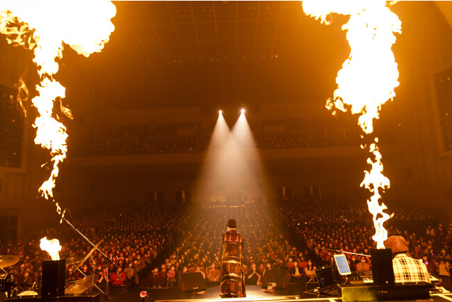 ダンサーを含めたメンバー紹介では、人柄の伝わるエピソードを田原が言い添えていたのが印象的。高いプロ意識を共有するメンバーたちと、濃密なコミュニケーションを重ねながらステージをつくりあげていく姿勢が垣間見えた。細かいステップを踏みながら華麗に舞い踊った「ごめんよ涙」では、<胸の夕陽が赤いから>という歌詞に合わせて照明が一瞬深紅に。「ジャングルJungle」では、エクトロニックなダンスビートで空気をガラリと変えた。「顔に書いた恋愛小説(ロマンス)」では、バンドメンバーと随所で絡みながらステージを縦横無尽に動き回り、ファンを大いに沸かせる。その後の「愛しすぎて」は、センターに立ち歌唱をしっかりと届けた。かと思えば「Bonita」では黒いハットをかぶり、揺らめく炎を背に、闘牛士のような身のこなしを織り交ぜてパフォーマンス。1曲1曲に物語があり、セットリストの構成も起伏に富んでいて、その音楽性の幅広さに驚かされた。