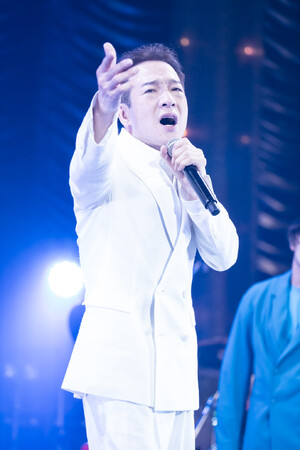 ダンサーのソロコーナーを経て、白いスーツに着替えて登場した田原。「雨が叫んでいる」を切々と物悲しく歌い届けると、代表曲の一つ「抱きしめてTONIGHT」を披露。重力の存在を感じさせない軽やかなムーンウォーク、なめらかなステップ。当時の勢いはそのままに、表現はより深く豊かに変化しており、ベテランエンターテイナーの凄みを感じさせた。曲が終わると、ライトが消えた暗闇の中、微動だにせず最後のポーズをキープ。直後に「Dynamite Survival」を畳み掛け、ジャケットをはだけたり髪を撫でつけたりするアクション、ボクサーのような動きを交えたキレ味鋭いダンスを披露した。