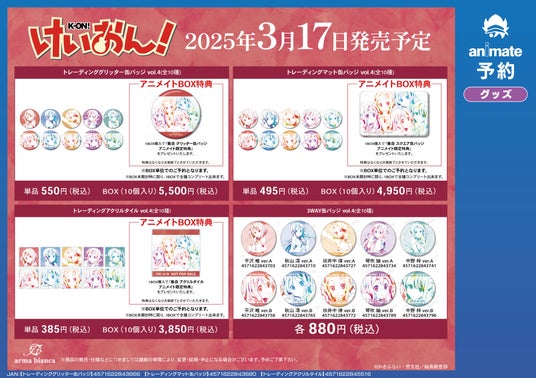 2024年12月19日(木)よりアニメイト通販にて「『けいおん!』アニメイト通販先行予約キャンペーン」の実施が決定いたしました。