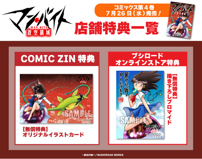 株式会社ブシロード(本社:東京都中野区、代表取締役社長:木谷高明)のグループ会社にあたる株式会社ブシロードワークス(本社:東京都中野区、代表取締役社長:新福恭平)は、無料で読めるWEBマンガサイト「コミックブシロードWEB」にて好評連載中の『マン・バイト 蒼空猟域』単行本第4巻が、本日7月26日(水)に発売することをご案内致します。