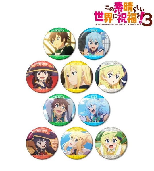 アクア、めぐみん、ダクネス、アイリスの印象的なシーンを缶バッジ4個セットに仕上げました。