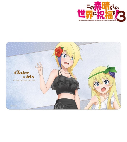 ダクネス、クレア、アイリスのイラスト、キャラクターの名前をマルチデスクマットに仕上げました。