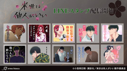 株式会社アルマビアンカ(本社:東京都中野区、代表取締役:坂井智成)はTVアニメ『来世は他人がいい』のLINEスタンプ配信を12月24日より開始いたしました。