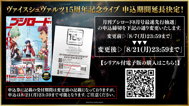 現在実施中の「月刊ブシロード8月号最速先行申込期間」を2週間延長し、8月21日(月)23:59まで申し込み可能となります。