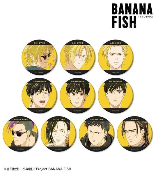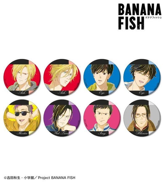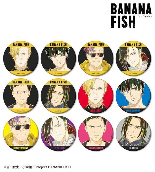 アッシュ・リンクス、奥村英二、ショーター・ウォン、李月龍、シン・スウ・リン、ブランカのイラストを新たなタッチで魅力的に表現し、マットな手触りの缶バッジに仕上げました。
