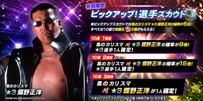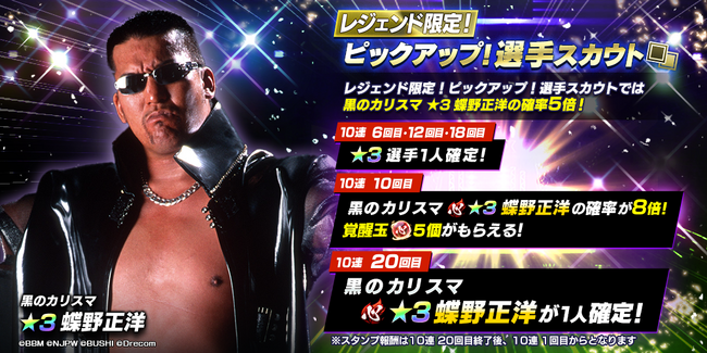 レジェンド限定!★3蝶野正洋が登場するピックアップ選手スカウトを開催!