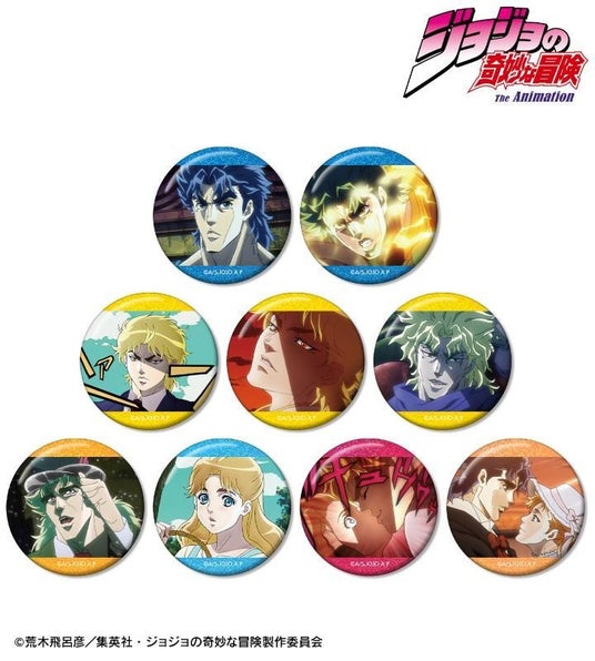 ジョナサン・ジョースター、ディオ・ブランドー、ロバート・E・O・スピードワゴン、エリナ・ペンドルトンの印象的なシーンをホログラム加工を施した缶バッジに仕上げました。