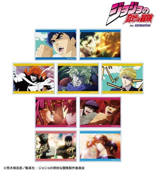 ジョナサン・ジョースター、ディオ・ブランドー、エリナ・ペンドルトン、ウィル・A・ツェペリの印象的なシーン、名シーンをアクリルカードに仕上げました。