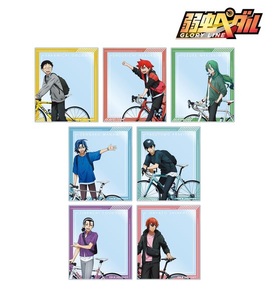 小野田 坂道、鳴子 章吉、巻島 裕介、真波 山岳、荒北 靖友、東堂 尽八、新開 隼人の描き下ろしイラストをアクリルカードに仕上げました。
