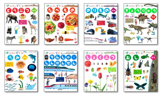 定番のテーマを網羅した「はじめてのずかん」にぴったりのシリーズ。「どうぶつ 改訂版」「たべもの」「のりもの 改訂版」「きょうりゅう 新版」「うみ 改訂版」「でんしゃ・しんかんせん」「しょくぶつ」「むし 新版」の8冊。
