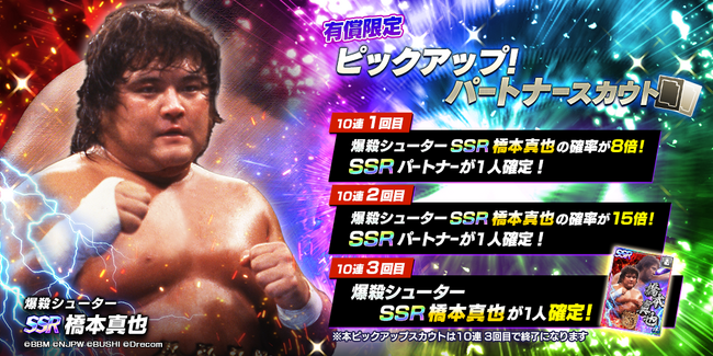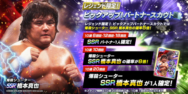 レジェンド限定のSSRパートナーが登場!SSR「[爆殺シューター]橋本真也」をピックアップしたパートナースカウトを開催!