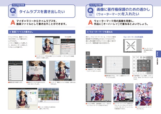 また、デジタルイラスト制作に欠かせない「レイヤー」や「ブラシ」の基本操作、「ブレンドモード」を使った光や影、色の表現、マンガ制作に役立つ機能、さらにAI学習からイラストを守るための「AI学習妨害機能」といった最新機能など、制作に役立つ基本知識から上手に仕上げるための実践テクニックを網羅しています。