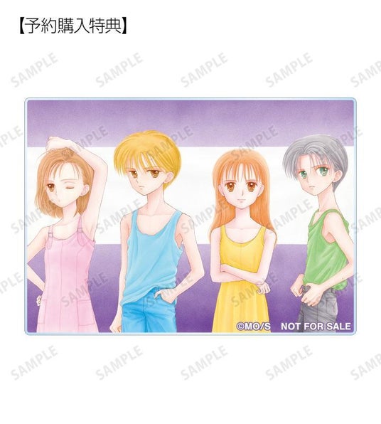 完全版の表紙、倉田紗南、羽山秋人、加村直澄、松井風花の原作コマイラストをアクリルカードに仕上げました。