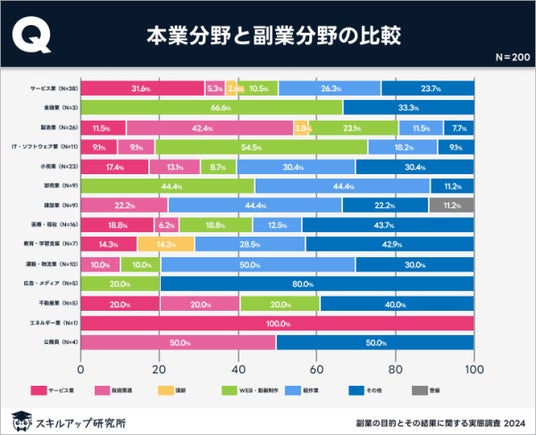 一方、投資関連やサービス業、WEB・動画制作もそれぞれ10%を超えており、副業の分野にはバリエーションがあることが明らかになった。