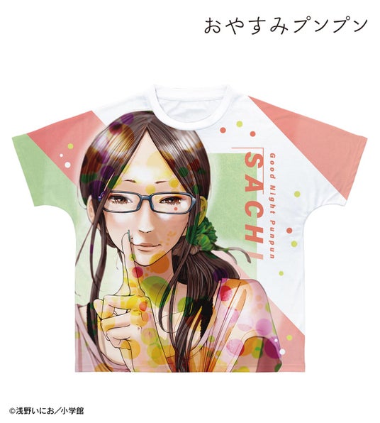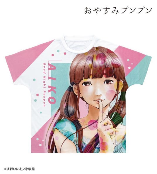 田中愛子、南条幸のイラスト、キャラクターの名前、作品名をフルグラフィックTシャツに仕上げました。