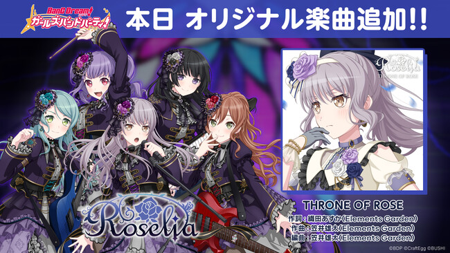 ライブで2日間演奏したオリジナル楽曲「THRONE OF ROSE」が、「ガルパ」に追加されることが決定。