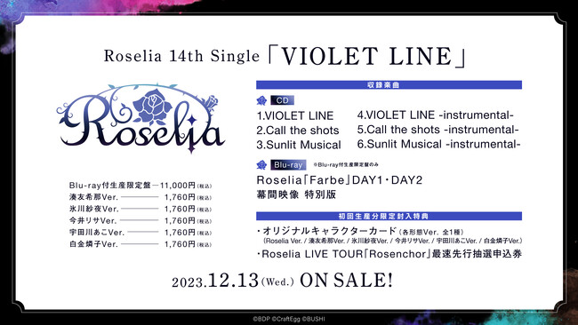 2023年12月13日(水)にRoselia 14th Single「VIOLET LINE」のリリースが決定しました。