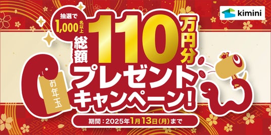 株式会社 学研ホールディングス(東京・品川/代表取締役社長:宮原博昭)のグループ会社で、オンライン英会話サービス「Kimini英会話」を提供している株式会社 Glats(東京・品川/代表取締役社長:杉原聡)は、2024年12月24日(火)より、総額110万円の豪華賞品が当たる「Kimini英会話お年玉プレゼントキャンペーン」を実施中です。