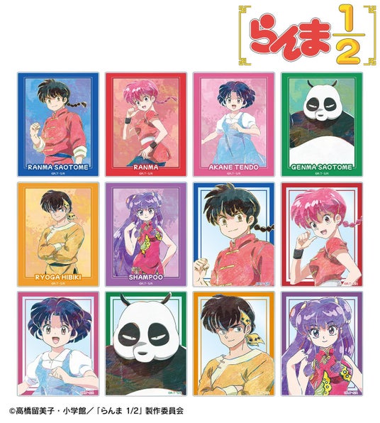 早乙女乱馬、らんま、天道あかね、早乙女玄馬、響 良牙、シャンプーのイラストを新たなタッチで魅力的に表現し、アクリルカードに仕上げました。