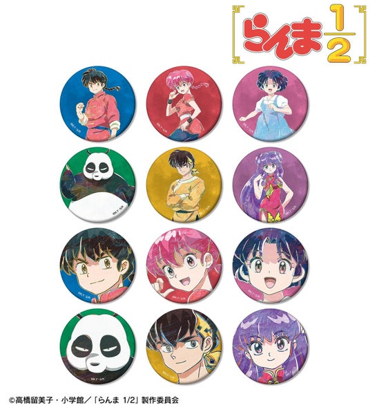 早乙女乱馬、らんま、天道あかね、早乙女玄馬、響 良牙、シャンプーのイラストを新たなタッチで魅力的に表現し、BIGな缶バッジに仕上げました。
