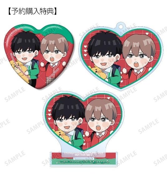 特典:はなげのまい先生 描き下ろし 柿本健&田中優也 ちびキャラ 放課後ver. ハート型缶バッジ AMNIBUS限定特典