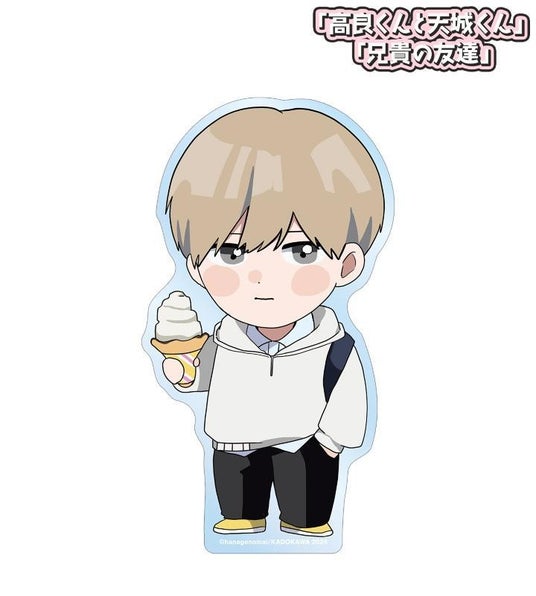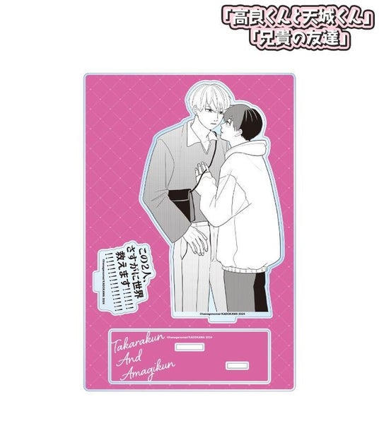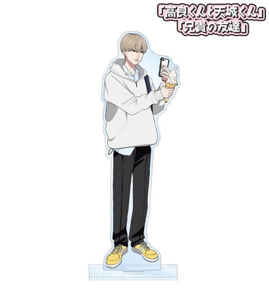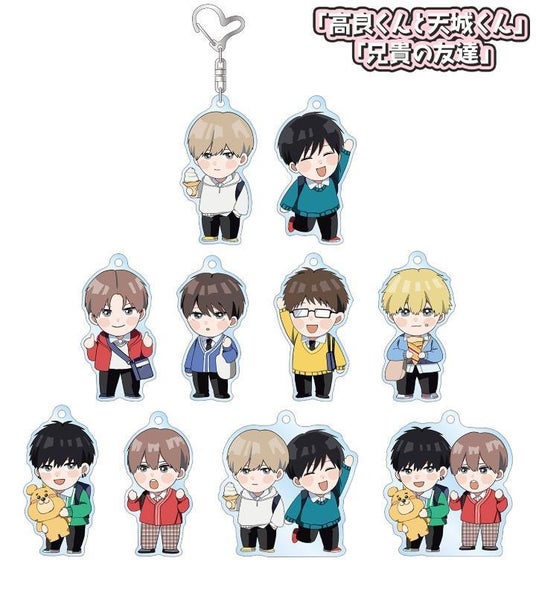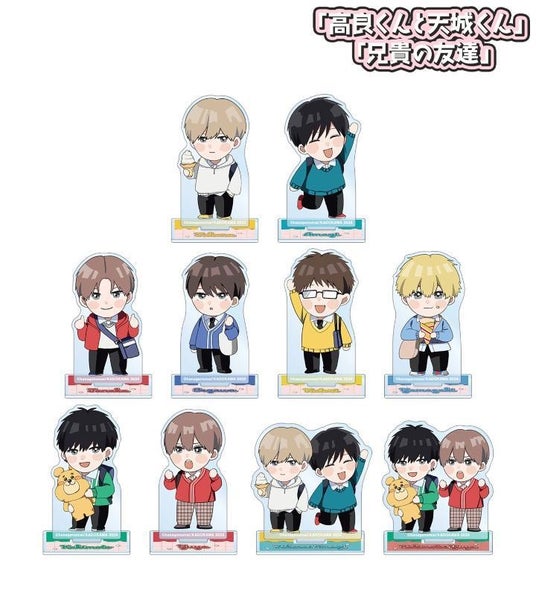 「高良くんと天城くん」4巻、5巻の表紙イラスト、「兄貴の友達 」3巻の表紙イラスト、「兄貴の友達 僕らのおうち」表紙イラストをパーツ付きのBIGなアクリルスタンドに仕上げました。