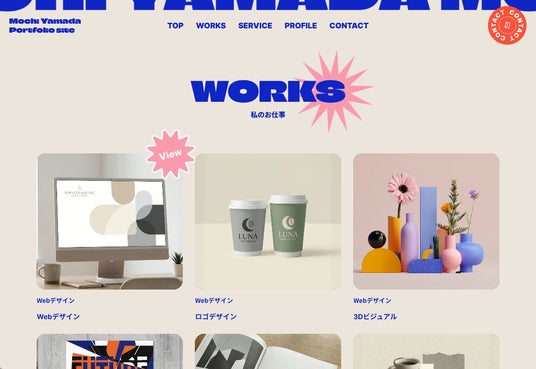 ポートフォリオサイト。Figma Sitesで公開まで行うには有料プランが必要ですが、デザインの作成は無料プランでも可能です。