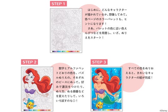 ディズニー好きの方はもちろん、日常を離れてなにかに集中したい方や、新しい趣味を見つけたい方にもおすすめ。ディズニーのキャラクターたちと出会えるぬりえを通して、自分の手で彩る絵画集をつくってみてはいかがでしょうか。