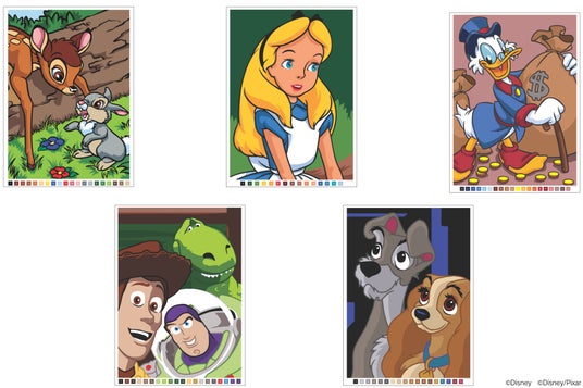 『Disney おとなの 100パズルぬりえ ラブリーキャラクターコレクション』では、ミッキーマウスやくまのプーさんたちのほかに、ピノキオやダンボ、アリスなどディズニー長編アニメーションに登場するキャラクターたちが登場。オリジナリティあふれる絵がたくさん見られます。