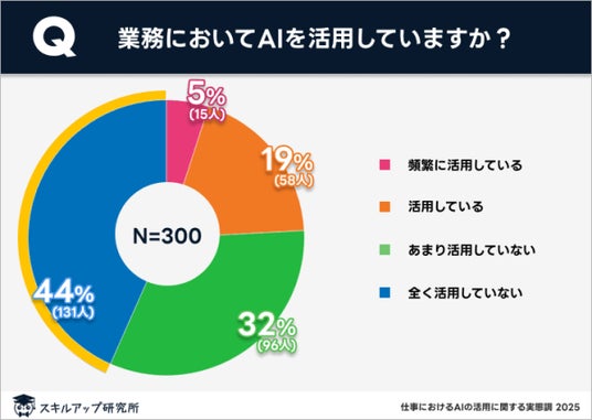 「業務においてAIを活用していますか?」という質問に対し、5%が「頻繁に活用している」、19%が「活用している」と回答した。