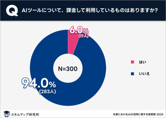 「使用しているAIツールのうち、課金しているものはありますか?」という質問に対し、利用者の10%が「はい」と回答した。
