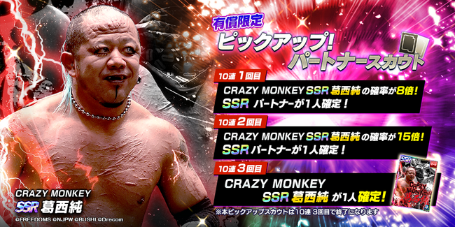 新規SSRパートナーが登場!SSR「[CRAZY MONKEY]葛西純」をピックアップしたパートナースカウトを開催!