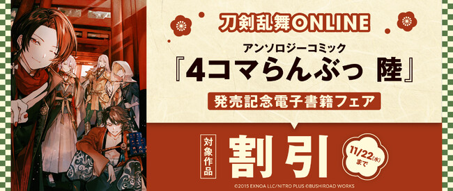 株式会社ブシロード(本社:東京都中野区、代表取締役社長:木谷高明)のグループ会社にあたる株式会社ブシロードワークス(本社:東京都中野区、代表取締役社長:新福恭平)は、「刀剣乱舞ONLINE」アンソロジーコミック『4コマらんぶっ 陸』が、本日11月9日(木)より発売することをご案内致します。