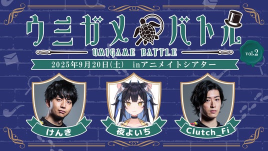 アニメイト池袋本店 地下2階多目的ホール・アニメイトシアターにて、2025年9月20日に人気の推理ゲーム『ウミガメのスープ』をベースにした新コンテンツ『ウミガメバトル』第2弾を開催しました。出演は、けんきさん、夜よいちさん。ゲストとしてClutch_Fiさんが参加し、推理の速さを競いつつも息のあったトークやボケ・ツッコミの応酬を繰り広げました。