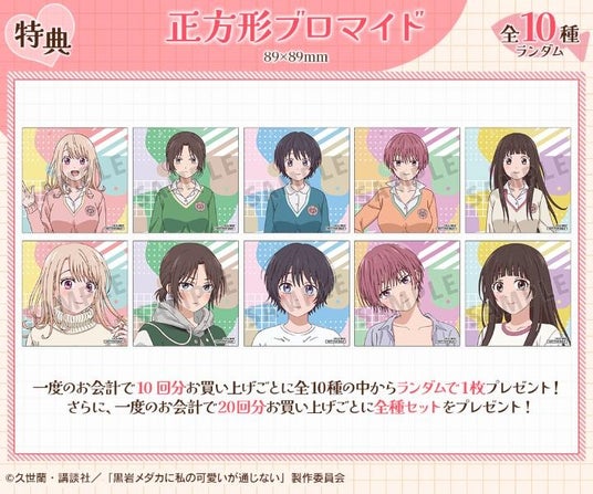 一会計で10回分ご購入で特典正方形ブロマイド(全10種)の中からランダムで1枚、20回分で全種セットプレゼント!
