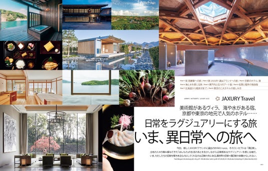 FRaU JAXURY号は、そのほか日本が誇る憧れ宿とホテル、ファッションはじめオールジャンルの素晴らしいもの・こと・サービスなど、“目に見える美しさ”を超えた、深い感性に触れる一冊となっています。