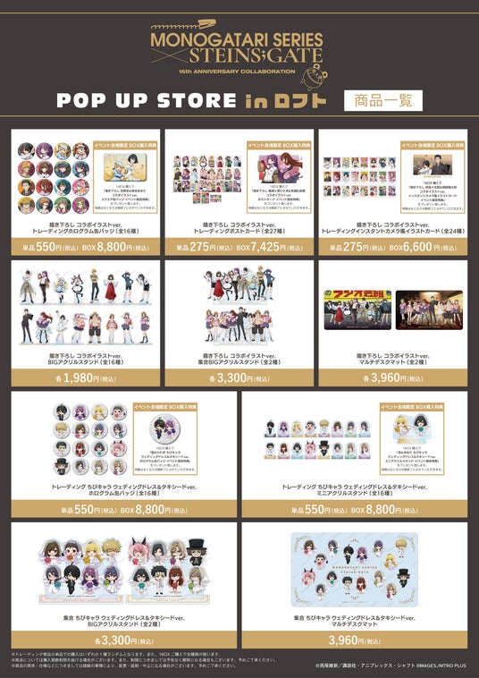 ロフトの一部店舗にて、『物語シリーズ×STEINS;GATE』のイベント「『<物語>シリーズ×STEINS;GATE』POP UP STORE in ロフト」を開催致します。