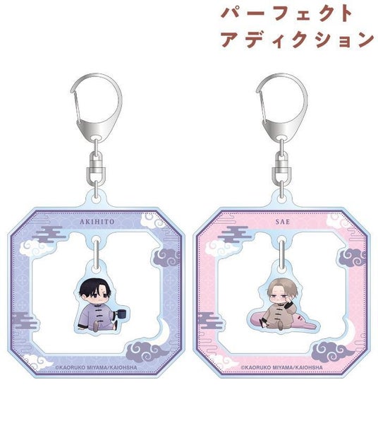 美山薫子先生描き下ろしちびキャライラストの高槻冴、久慈明仁をゆらゆら動くアクリルキーホルダーに仕上げました。