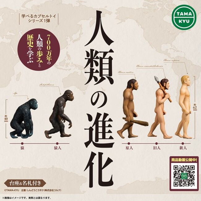 教科書で一度は見たことのある人類の進化のあの図がカプセルフィギュアになって登場です!