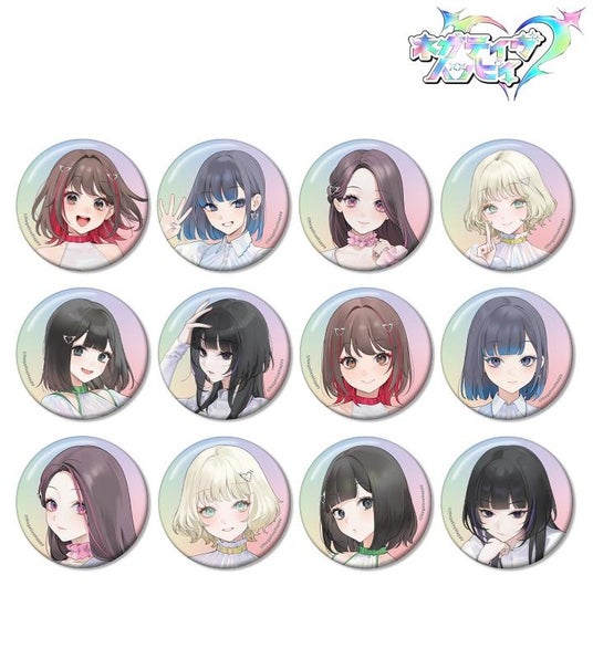 ユウヒ 、セナ、ハナコ、クロエ、マナカ、アヤセのイラストをプリズム風デザインの缶バッジに仕上げました。
