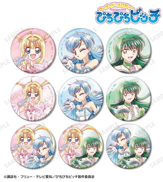 るちあ、波音、リナの描き下ろしイラストを新たなタッチで魅力的に表現し、缶バッジに仕上げました。