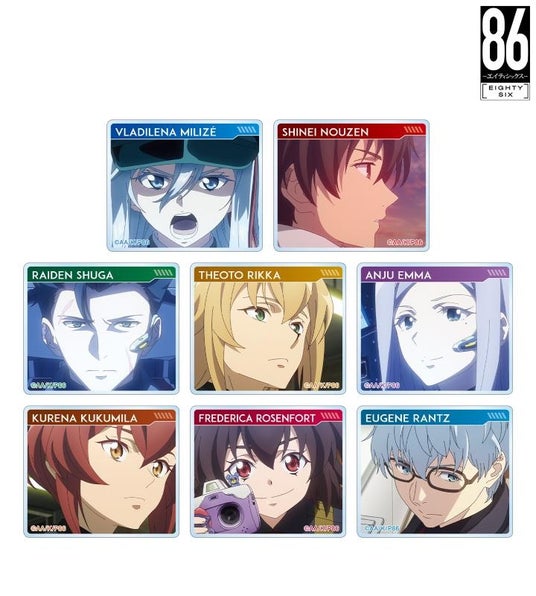 ヴラディレーナ・ミリーゼ、シンエイ・ノウゼン、ライデン・シュガ、セオト・リッカ、アンジュ・エマ、クレナ・ククミラ、フレデリカ・ローゼンフォルト、ユージン・ランツの印象的なシーンをアクリルステッカーに仕上げました。