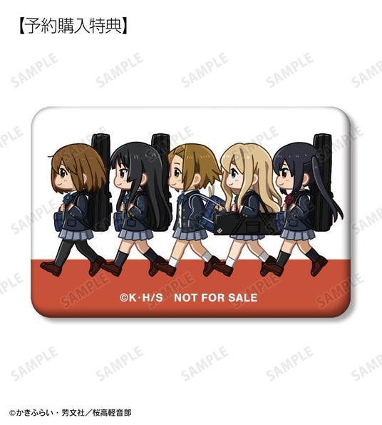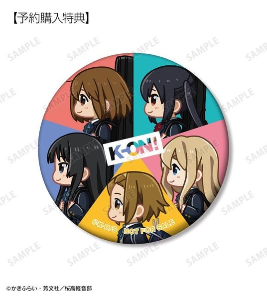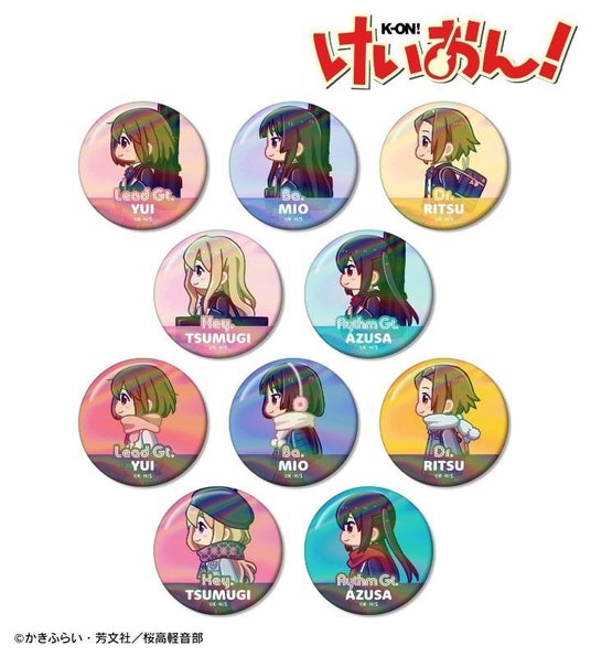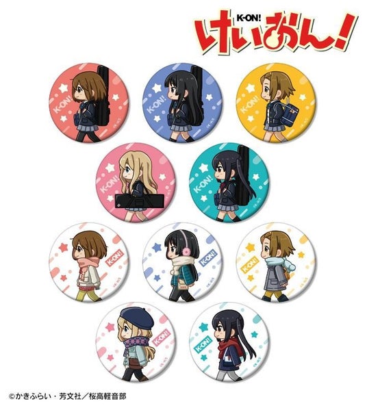 平沢 唯、秋山 澪、田井中 律、琴吹 紬、中野 梓が歩いているちびキャラを新たに描き起こし、缶バッジに仕上げました。